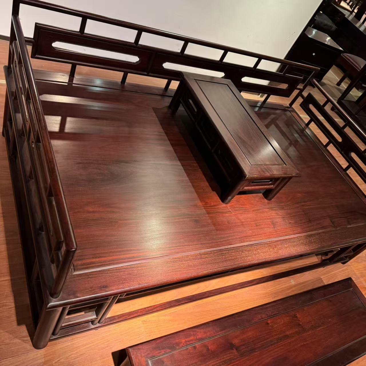 罗汉床是一种坐卧两用的古老家具,属于卧具的一种。通常,在寝室供卧时称为“床”,在客厅待客时称为“榻”。罗汉床最大的特点是左右和后面有围栏,但没有床架,围栏多用木榫连接,简单者用三块板做成。围栏两端常做成阶梯形软圆角,朴实而典雅.